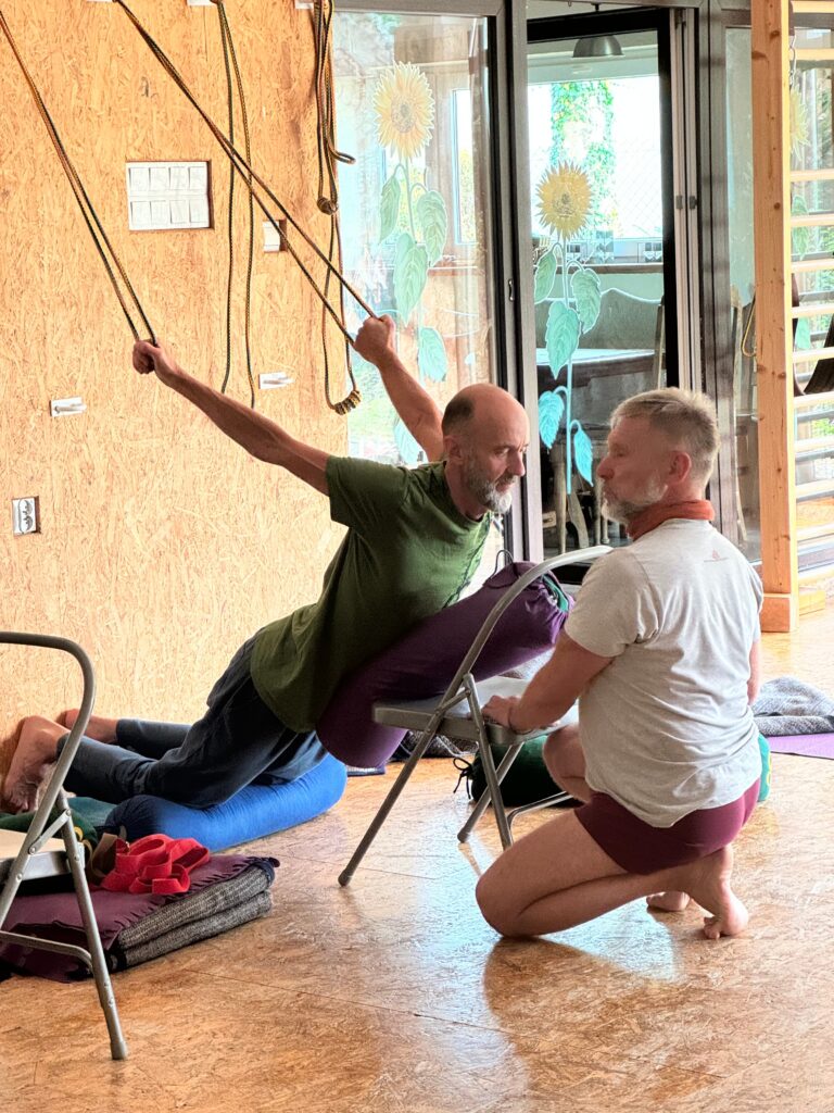 Proszę zabrać ze sobą: matę, dwa paski oraz bandaż. Jeśli przyjeżdżasz samochodem, zachęcam również do zabrania dodatkowego sprzętu, z którego korzystasz w swojej praktyce — np. krzesła, desek, ćwierćwałków itp. Do ćwiczeń proszę przygotować jasny strój z odsłoniętymi łokciami i kolanami.